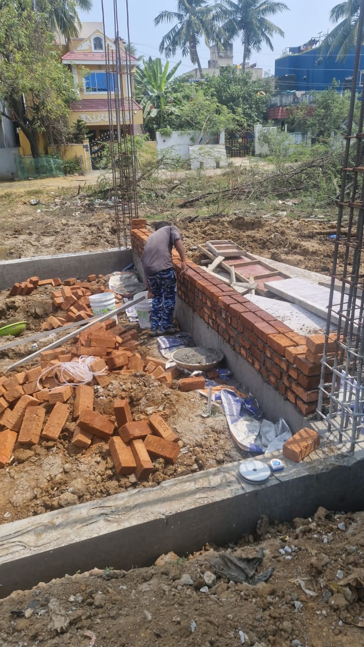 9” Brick work in CM 1:5 using well burnt stock brick in plinth beam above to roof slab bottom.